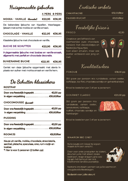 Ook dit jaar kan je vertrouwen op ons voor je desserten, en nu ook weer onze heerlijke gourmet en fondue vlees.